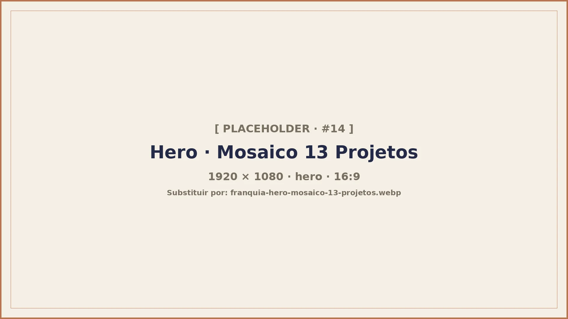 Não. O acesso é vitalício. Uma vez dentro da Franquia, os 13 projetos ficam disponíveis pra você usar pelo tempo que precisar — em qualquer dispositivo, em qualquer cidade. E os novos modelos entram em cima desses, nunca substituem.